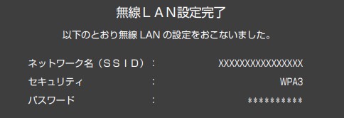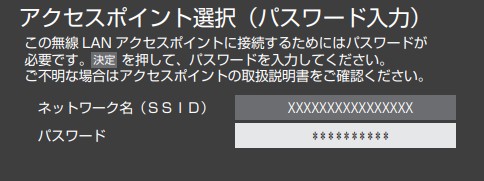 (4)選択したSSIDのパスワード(暗号キー)を入力し、【設定完了】を選んで[決定]ボタンを押します。