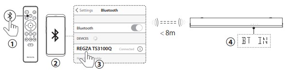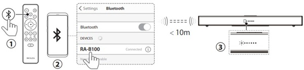 ※サウンドバーとBluetooth接続機器の間に障害物がない場合