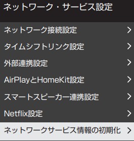 (1)リモコンの[操作/設定]ボタンを押して【設定】→【ネットワーク・サービス設定】→【ネットワークサービス情報の初期化】の順に進みます。