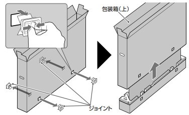 ●ジョイント4個をはずして包装箱(上)を抜き取ります。