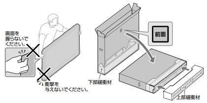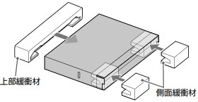 ●下部緩衝材が梱包箱の奥にセットされていることを確認してください。