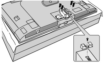 [3]テレビ本体を簡易テーブルにのせ、本体背面のカバーを外して支柱を取り付けてネジで固定します