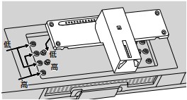 ※75V型:本体のネジに支柱をひっかけて取り付け、ネジで固定します。支柱を掛けるネジで、「高」と「低」が選べます。