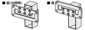●43Z670N:「低」または「高」で高さ調整金具を取り付けます。
