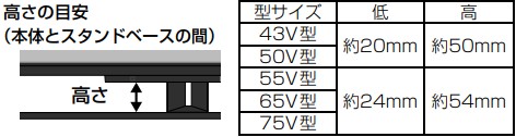 ※43V型、50V型、55V型:「低」または「高」で高さ調整金具を取り付けます。