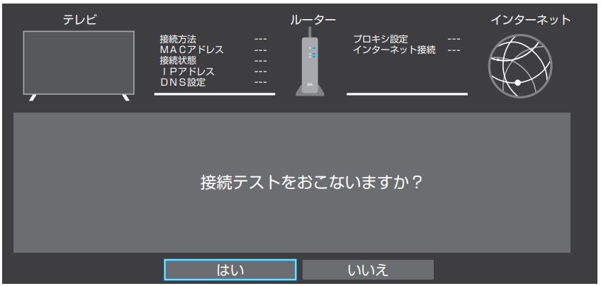 「接続テストをおこないますか?」の画面に切り換わりますので【はい】を選択してください。
