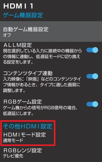 HDMIモードを変更することで、機器によって正常に映像がでない場合があります。